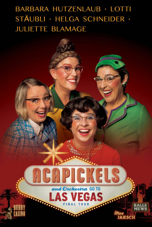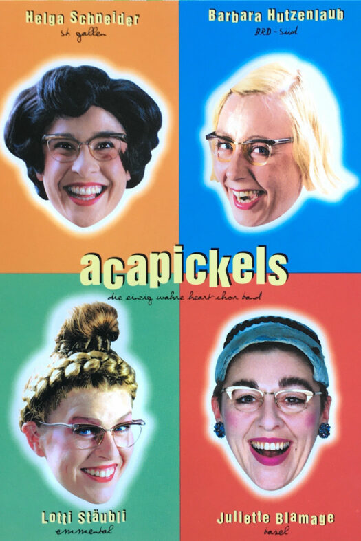 Als ich als 23-Jährige Schwäbin nach Zürich kam, änderte dies mein ganzes Leben. Da war plötzlich die Theaterausbildung, das erste Mal dreistimmig singen in einer Bigband, Akrobatik, Stepptanz und im Opernhaus als Bewegungsschauspielerin auf der Bühne stehen. Mich packte es von allen Seiten und eines wurde schnell klar: Das ist was ich will… Theater machen! So gründete ich schon bald meine eigene Band »Covergirls«, die bekannt war für ihre aufwendigen Inszenierungen. Bald darauf ging es auch schon los mit den »acapickels«, welche für die nächsten 15 Jahre im Zentrum meines Schaffens standen. Diese vier in grellen Kostümen mit Handtasche und Blockflöte bewaffneten Damen eroberten mit ihren sechs abendfüllenden Bühnenprogrammen die Herzen vieler Zuschauer.