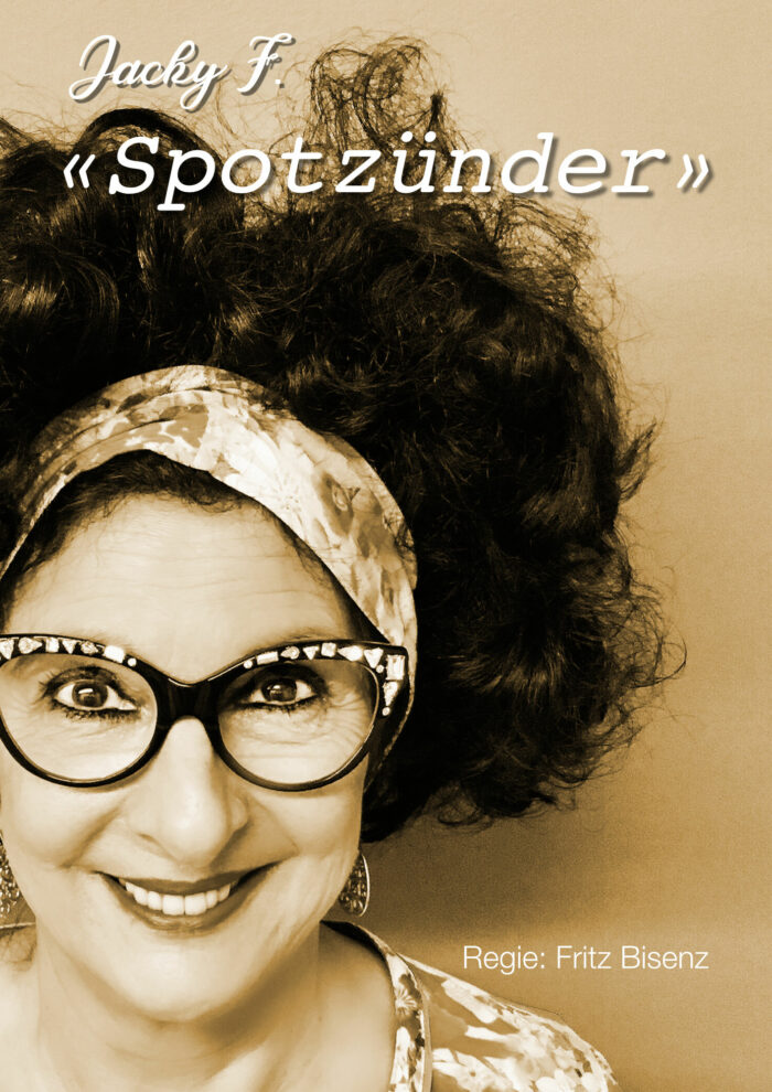 Jacky F. bekannt durch ihre Kolumnen aus dem Zürich Tagesanzeiger feiert 2012 ihr Bühnendebüt mit »Spotzünder«. Zusammen mit Fritz Bisenz arbeiteten sie über 1 Jahr an ihrem ersten Solostück. Autorin: Jaqueline FrischknechtCo Autorin: Fritz BisenzDramaturgie/Regie: Fritz BisenzEndregie: Martha Zürcher.