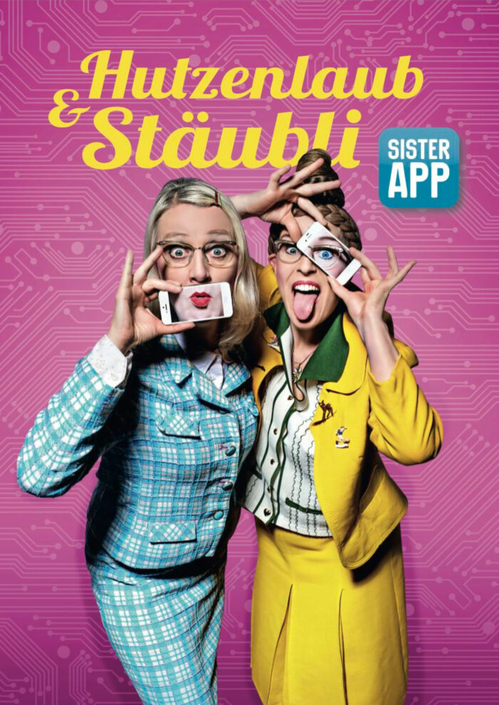 Hutzenlaub & Stäubli feiert 2016 Premiere mit ihrem vierten Bühnenstück »Sister App«, Schauspiel: Fritz Bisenz & Jasmin Clamor, Musiker: Marino Bernasconi, Autoren: Fritz Bisenz & Jasmin Clamor, Regie & Co Autorin: Bettina Dieterle, Co Regie: Fritz Bisenz & Jasmin Clamor, Musikalische Leitung: Markus Schönholzer